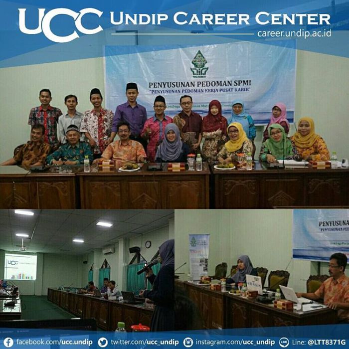 Undip Career Center pada tanggal 18 Agustus 2016 melaksanakan Sharing Session berkaitan tentang teknis dan berdirinya suatu pusat karir kepada UIN Semarang dalam sebuag kegiatan "Penyusunan Pedoman Kerja Pusat Karir". UCC menceritakan perjuangan membuat sebuah pusat karir dan memberikan tips-tips dalam pengelolaannya. Hasil dari Sharing Session dengan UIN Semarang ini, diharapkan menjadi suatu awal koloborasi berkesinambungan yang bermanfaat untuk ke depannya.